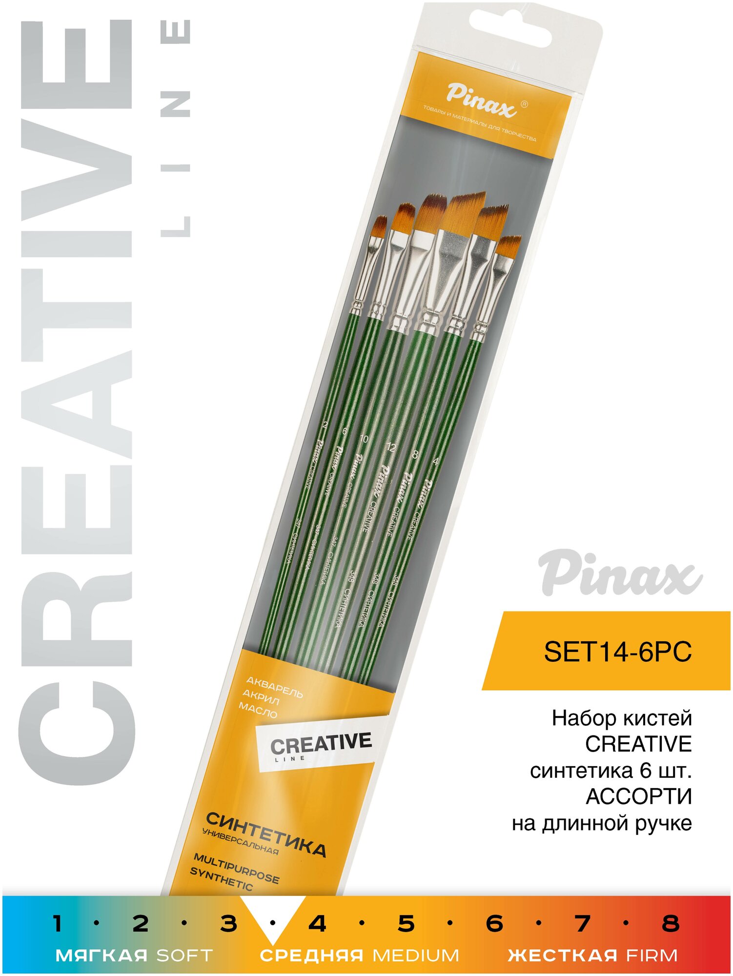 Набор кистей синтетика Pinax "CREATIVE" АССОРТИ 6 шт длинная ручка (set14-6pc)