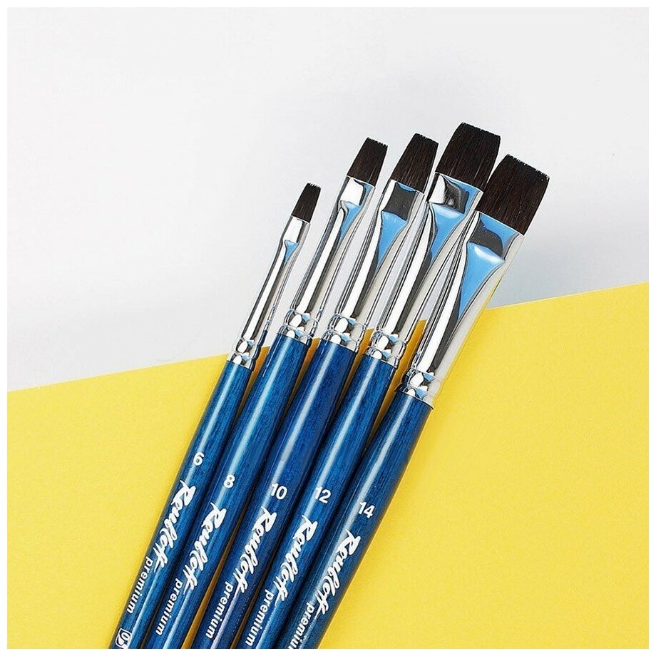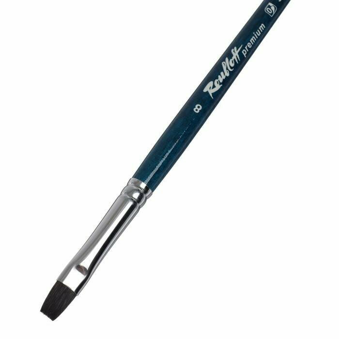 Кисть белка микс №8 плоская Roubloff premium ручка синяя короткая (Rbf-ЖA2-08,046bБ)