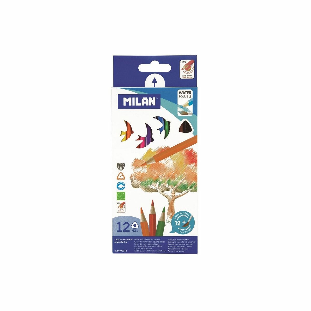 О серии: акварельные карандаши «Milan» изготавливаются из высококачественных и светостойких пигментов. Серия разработана специально для детей школьного возраста. Карандаши имеют эргономичный корпус треугольной формы. Грифель вклеен по специальной технологии, которая препятствует поломке грифеля. Выпускаются в комплекте с кистью по 12 и 24 цвета.