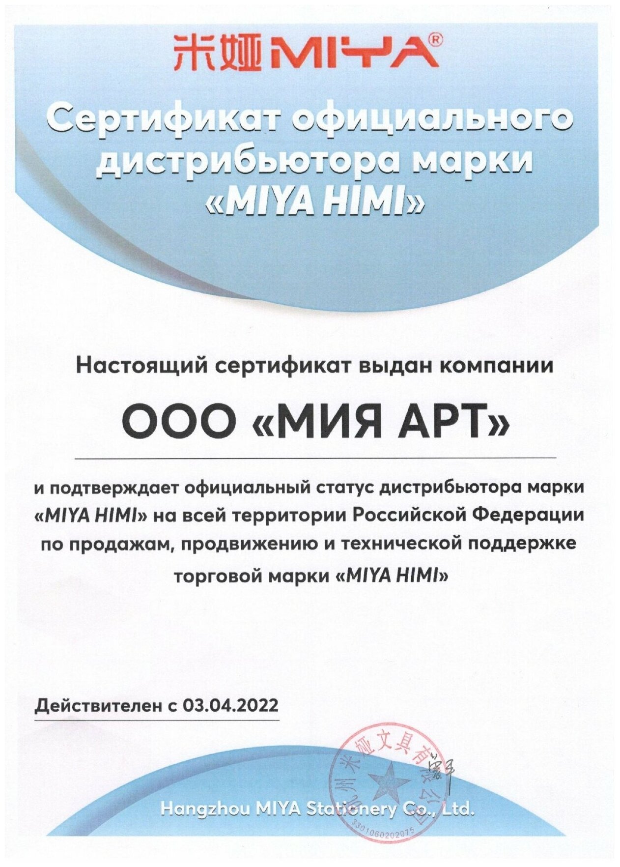 Производство: производится китайской компанией MIYA в провинции Шаньдун. Компания MIYA была основана в 2011 году, выросла и расширилась как ведущий бренд в индустрии канцелярских товаров и художественных промыслов в Китае, посвятив себя созданию товаров для творчества. Вся продукция бренда производится по общемировым стандартам качества, не токсична и безопасна в применении.