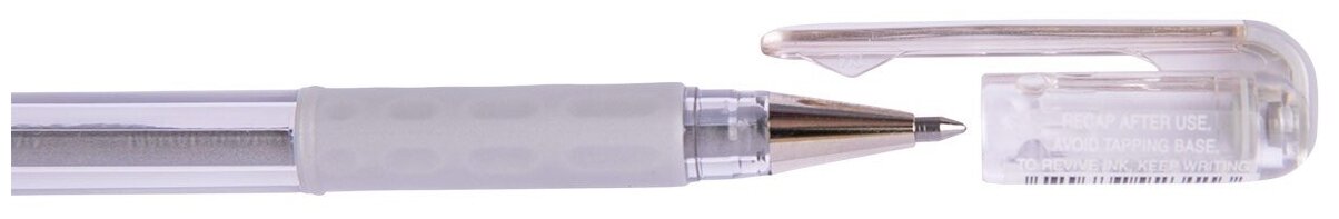 Тонкий прозрачный корпус ручки изготовлен из прочного пластика, что позволяет контролировать остаток чернил. Так же ручка имеет цветные вставки, выполненные в тон чернил, инновационный состав которых, защищает надписи от воздействия света и влаги. Зона захвата на корпусе ручки снабжена прорезиненным грипом для предотвращения выскальзывания ручки во время письма. Надписи сделанные ручкой идеально смотрятся на бумаге темных расцветок, в том числе черной.