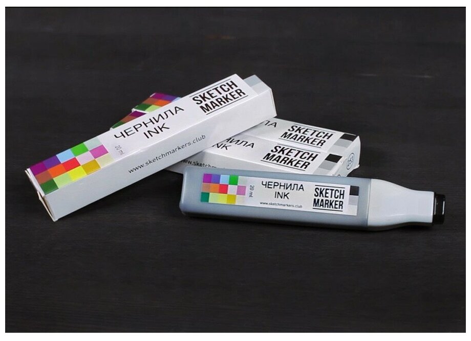 Чернила для заправки на спиртовой основе SKETCHMARKER изготовлены по специальной технологии и отличаются высоким качеством, обладают высокой светоустойчивостью, не растекаются и быстро сохнут на поверхности. Именно эта технология гарантирует ровный цвет, свободный от разводов. Все цвета соответствуют номеру цвета на маркере. Одной ёмкости хватает на 10 полных заправок одного маркера. Маркировка цвета на чернилах соответствует номеру цвета на маркерах.