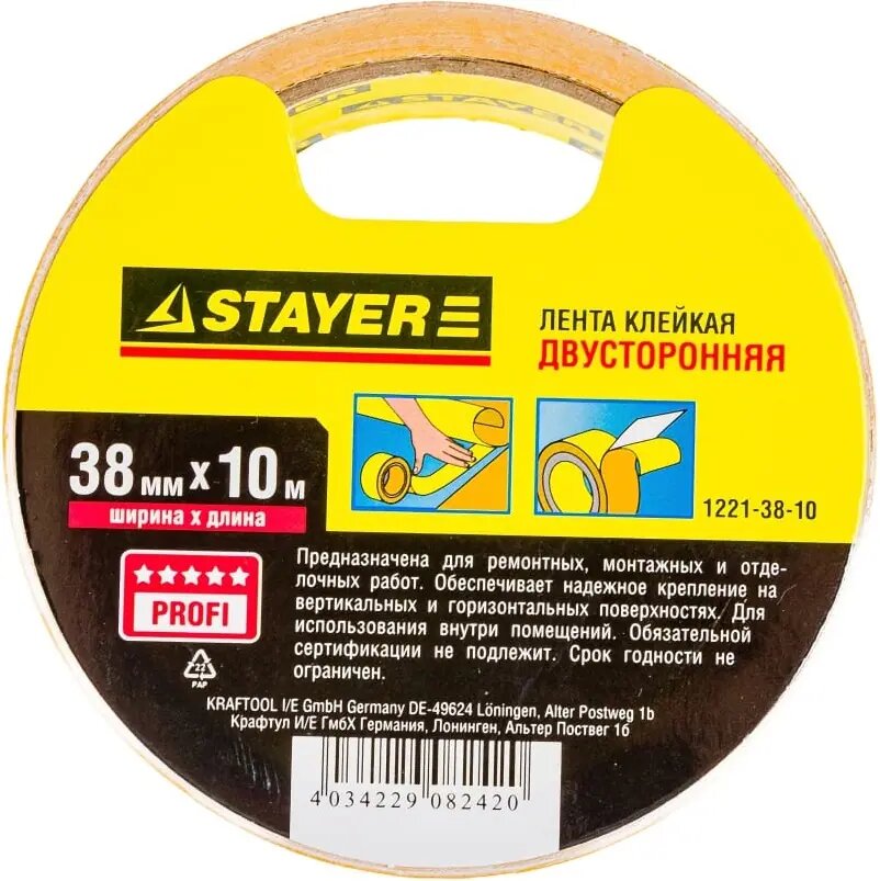 Лента клейкая Stayer "Profi" двусторонняя армированная тканью 38 мм х 10 м (1217-38-10)