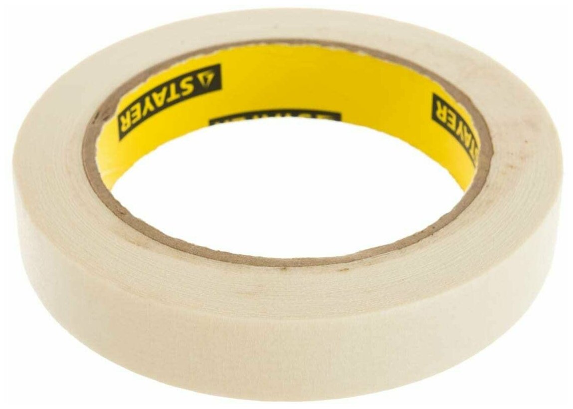 О товаре: лента Stayer "Master" малярная (малярный скотч) представляет собой специальную крепированную бумагу с нанесенным клеевым составом. Клеевой слой содержит в себе большое количества натурального каучука, что придает прочность и эластичность. Состав пропитки бумаги включает в себя компоненты, который позволяют работать с поверхностью с температурами от 0 до 80°С. Повышенная прочность крепированной бумаги и водостойкость позволяет работать практически в любых условиях. После удаления скотча на поверхности практически не остается следов. Выпускается в рулонах разной длины и ширины.