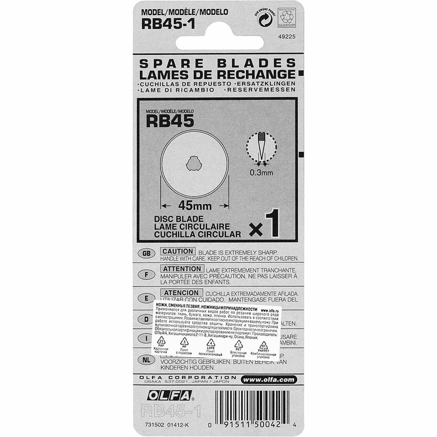 На сегодняшний день товар «Лезвие OLFA круглое для RTY-2/G45-C 1 шт (45х03 мм) (RB45-1)» можно купить с кешбеком в 1 магазине: Арт-маркет "Красный Карандаш"