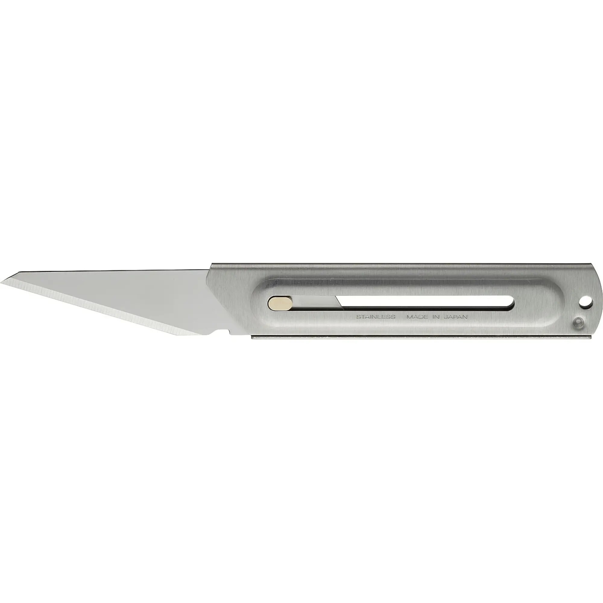 Нож хозяйственный нержавеющий с выдвижным лезвием 20 мм, OL- — сверхпрочный нож для резки бумаги, картона, резьбы по дереву и выполнения других хозяйственных работ. Корпус и лезвие изготовлены из нержавеющей стали, что обеспечивает прочность, устойчивость к коррозии и увеличивает срок службы инструмента.