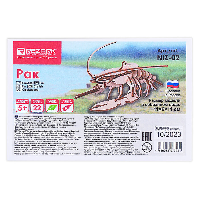 Сервис сравнения цен СкидкаГИД предлагает сравнить цены на товар «Сборная модель из фанеры REZARK "3D Пазл. Рак" (NIZ-02)»