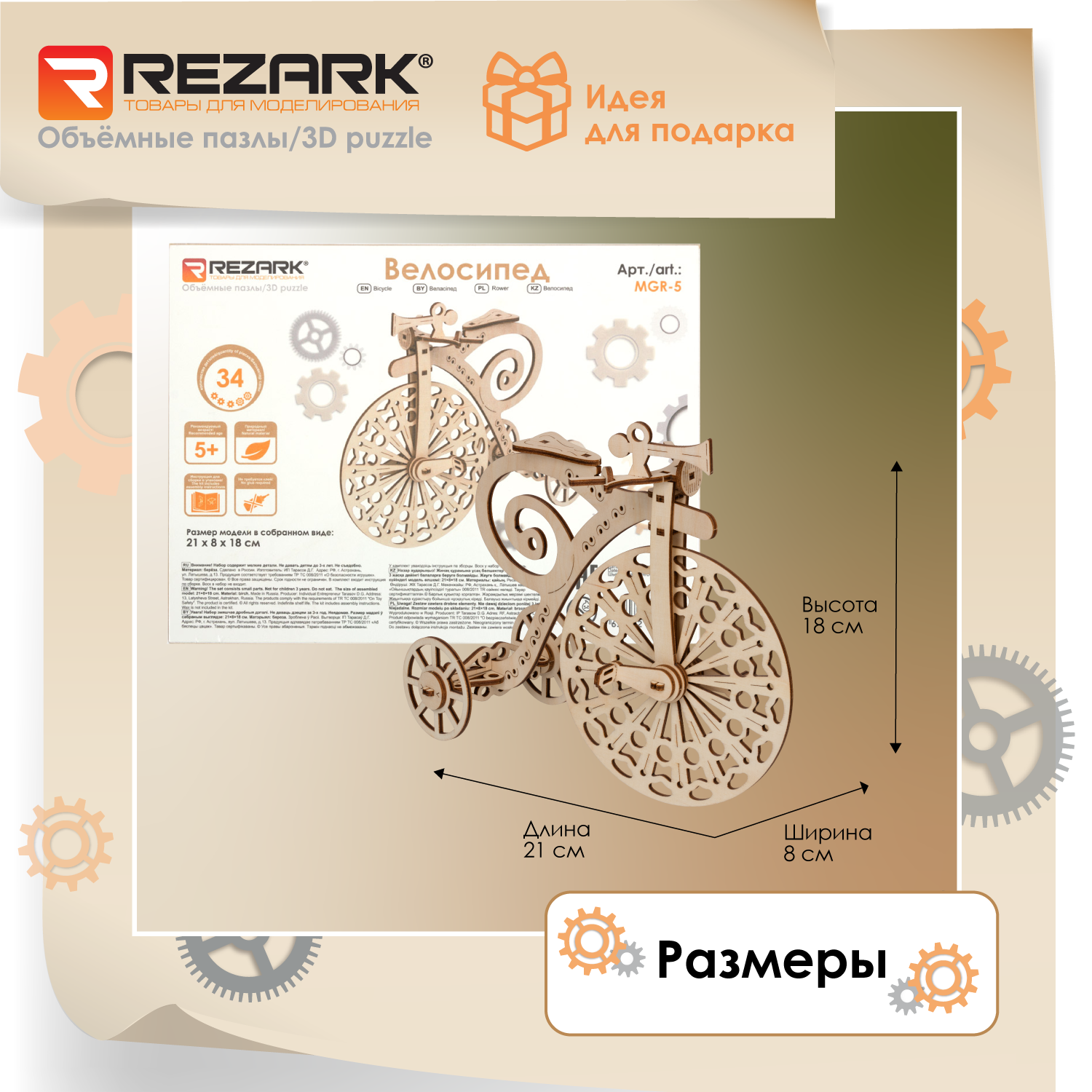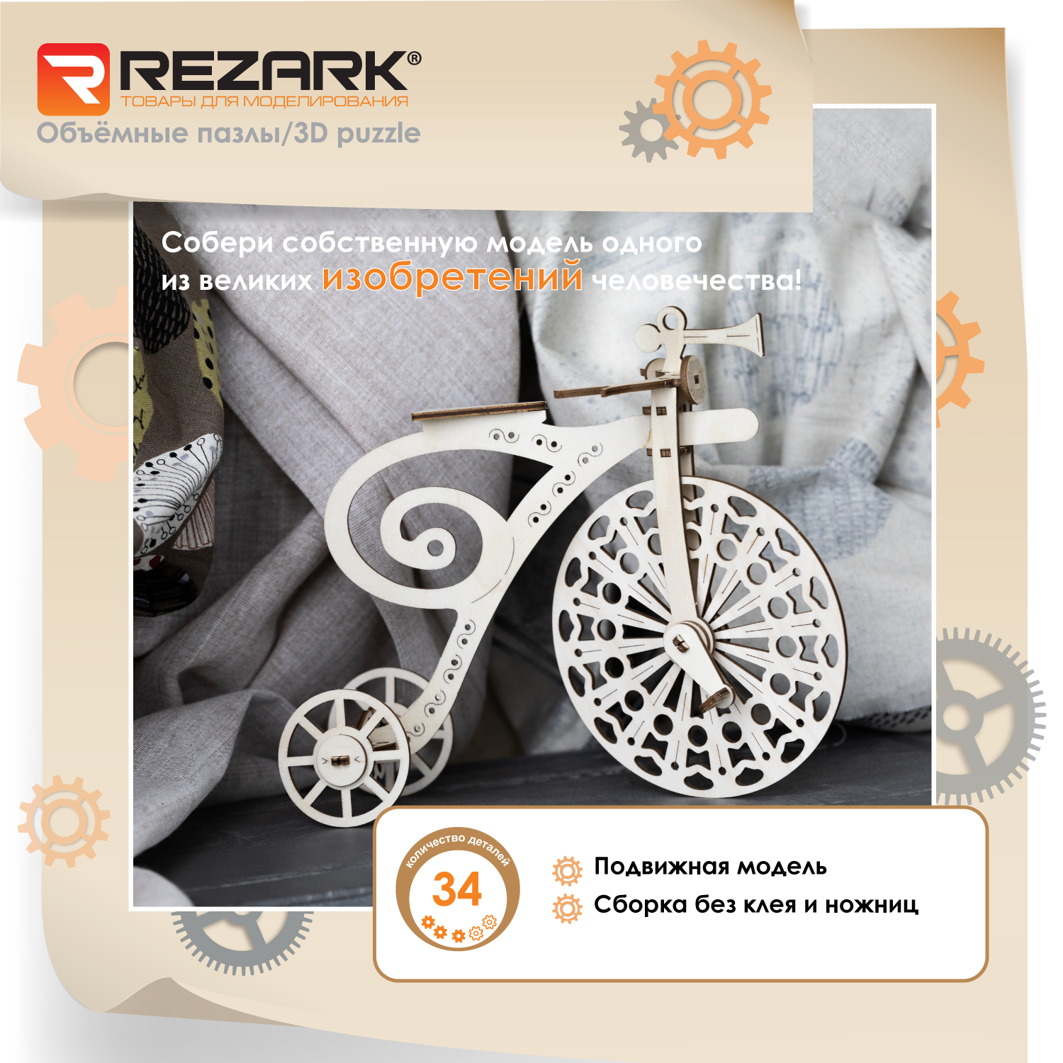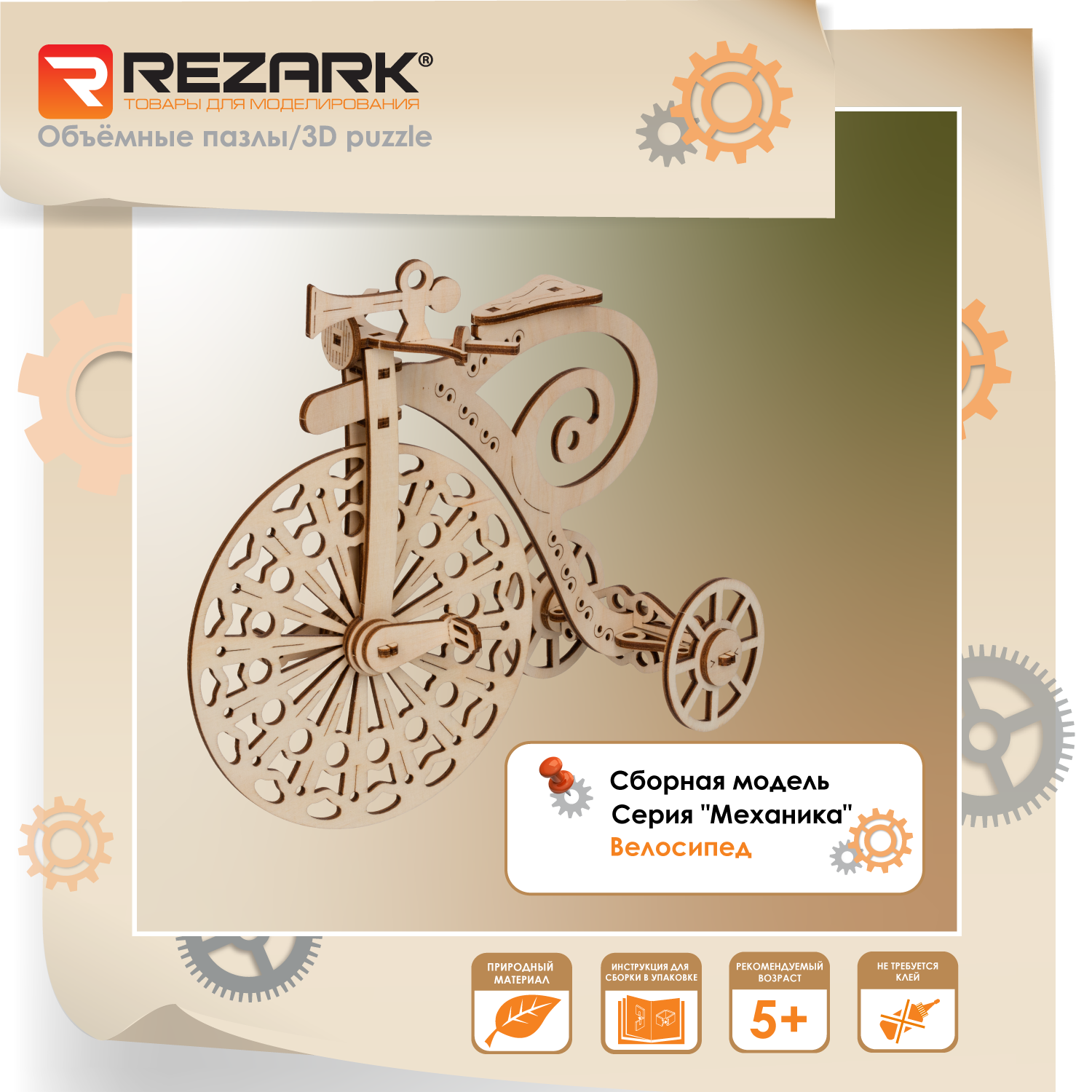 Сервис сравнения цен СкидкаГИД предлагает сравнить цены на товар «Сборная модель из фанеры REZARK серия: Механика "Велосипед" (MGR-5)»
