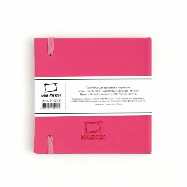 Скетчбук для графики и маркеров Малевичъ "Bristol Touch" 14х14 см 40 л 180 г малиновый (МЛ-401238) (размер: 140x140)