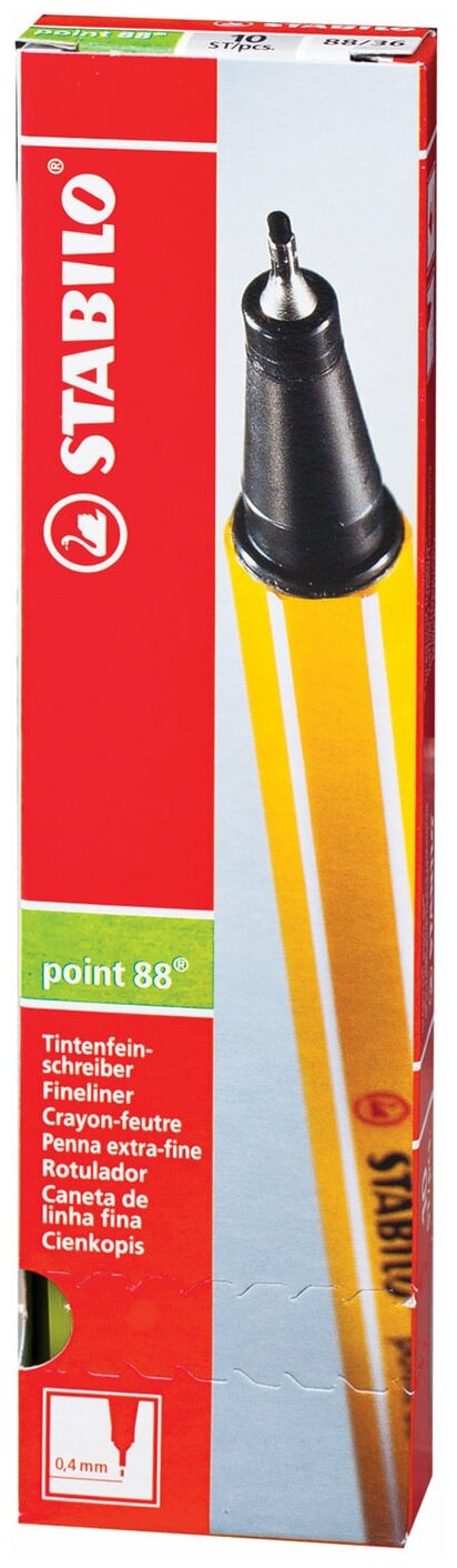 STABILO point 88 - идеальный компаньон для школьников, студентов и профессионалов. Впервые появившись на рынке в 1977 году, она ценится во всем мире за свое качество и удобство использования. В Европе это самая популярная капиллярная ручка. Знаменитая шестигранная форма корпуса STABILO point 88 очень удобна для руки. Выбор из 47 цветов означает, что вы всегда найдете идеальный оттенок для своих нужд, а 6 неоновых цветов только усилят эффект. Благодаря тому, что ручка длительное время не высыхает без колпачка, вам не придется беспокоиться, если вы случайно отвлечетесь и не закроете ее. Толщина линии 0,4 мм.