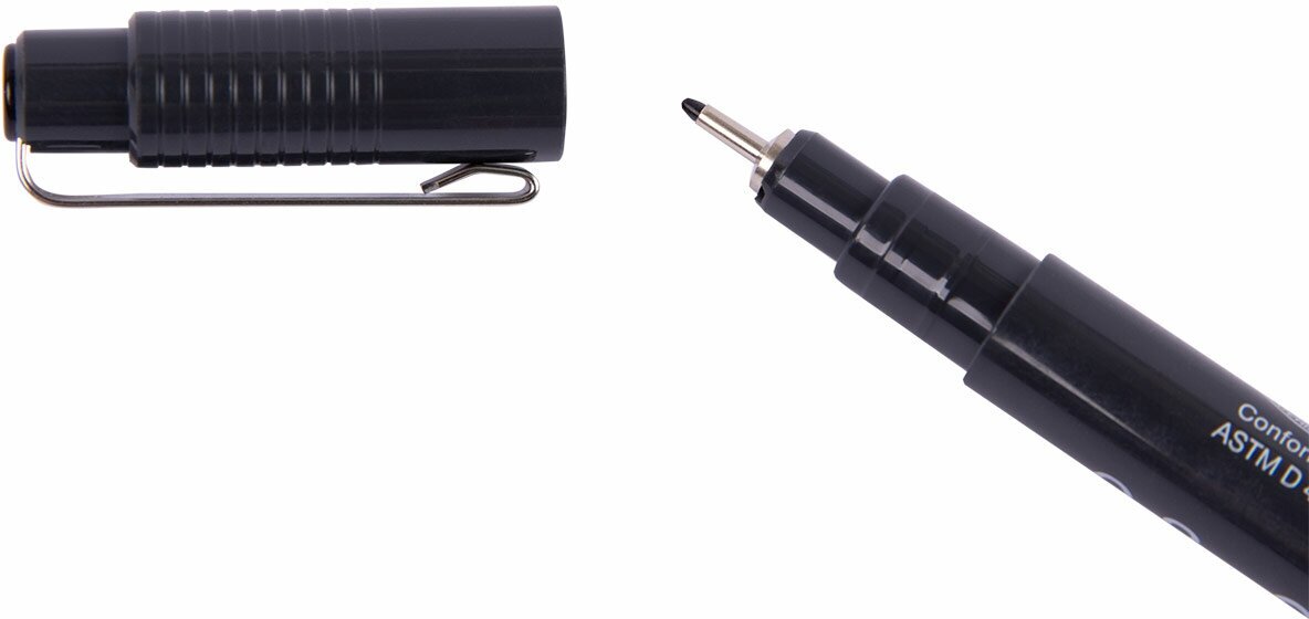 Точный линер с черными пигментными чернилами устойчивыми к воздействию воды и выцветанию - ISO 14145-2.