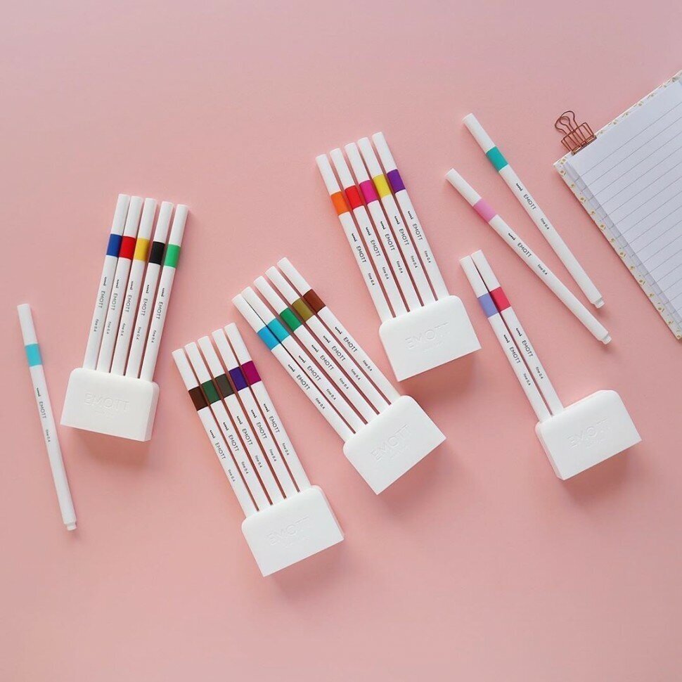 Производство: линейка линеров EMOTT создана брендом Uni Mitsubishi Pencil в Токио, основанным в 1886 году. Изначально бренд специализировался на производстве цветных карандашей. После столетних инноваций и в разработке пишущих инструментов Uni Mitsubishi Pencil создаёт линейку маркеров POSCA, состав и уникальные качества которых остаётся неизменным по сей день, они же являются визитной карточкой бренда и образцом неизменного качества всей продукции.
