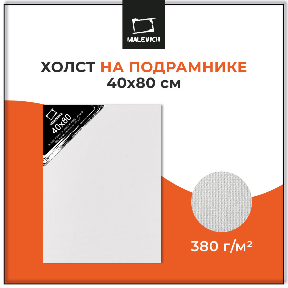 Холст на подрамнике грунтованный Малевичъ 40х80 см среднезернистый хлопок 100% 380г (МЛ-214080)