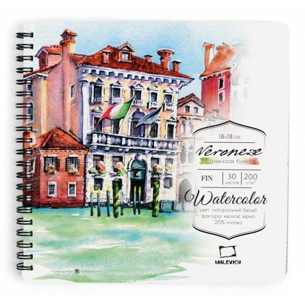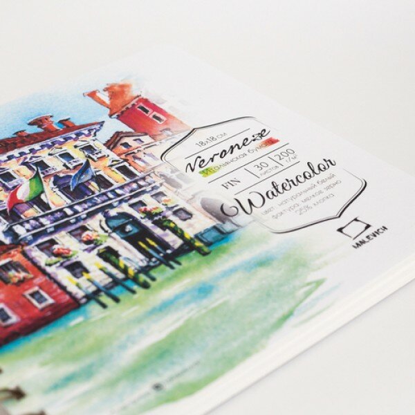 Скетчбук для акварели Малевичъ "Veronese" Fin 18х18 см 30 л 200 г (МЛ-401475) (размер: 180x180)