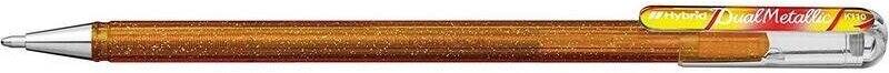Pentel Dual Metallic K110 это уникальная гелевая ручка, заправленная пигментными чернилами с добавлением блесток и пигмента, создающего эффект хамелеона. Цвета ручек меняются в зависимости от цвета бумаги и угла обзора. Теперь ничего не может быть проще, чтобы создать удивительные мерцающие картины или открытки. Металлический наконечник толщиной 1,0 мм обеспечивает равномерную подачу чернил для супер гладкого письма. Гелевые чернила, используемые для производства наших ручек, не текут, быстро сохнут на бумаге, не размазываются и устойчивы к воздействию света, а значит вы надолго сохраните свои работы в первозданном виде.