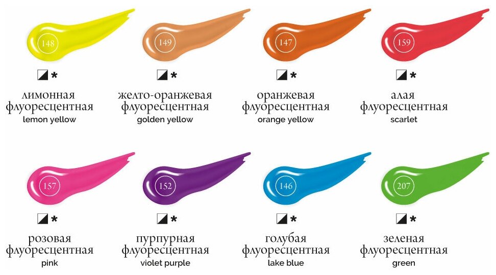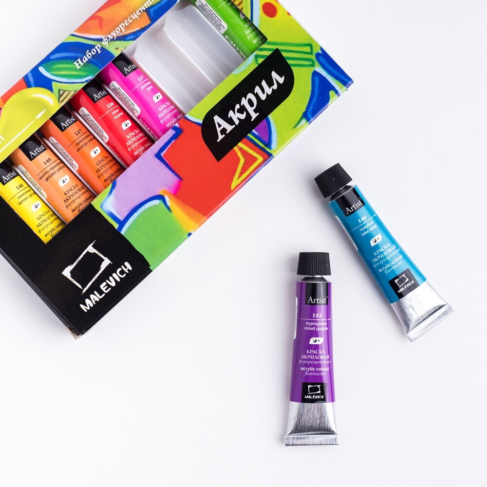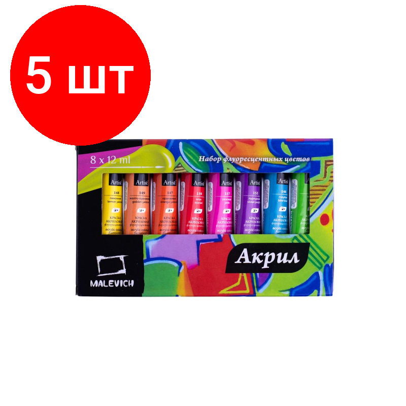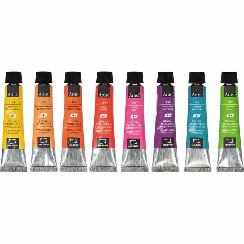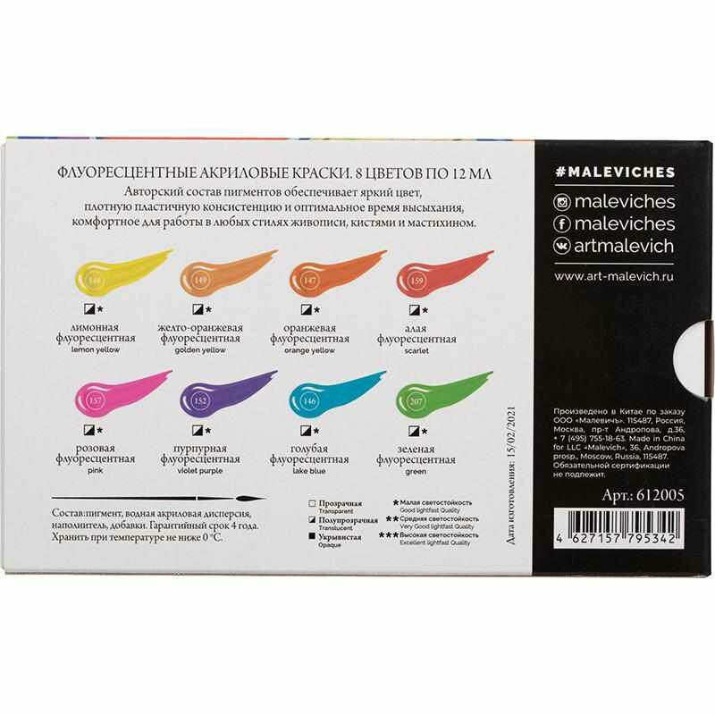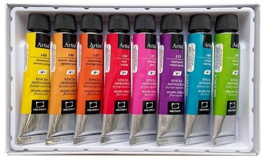 Набор акриловых красок "Малевичъ" флуоресцентных 8 цв*12 мл (МЛ-612005)