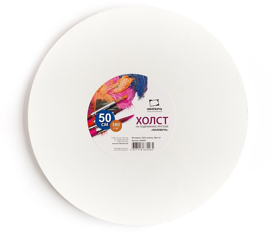 Холст на подрамнике грунтованный круглый Малевичъ D-50 см 380 г хлопок (МЛ-200050)