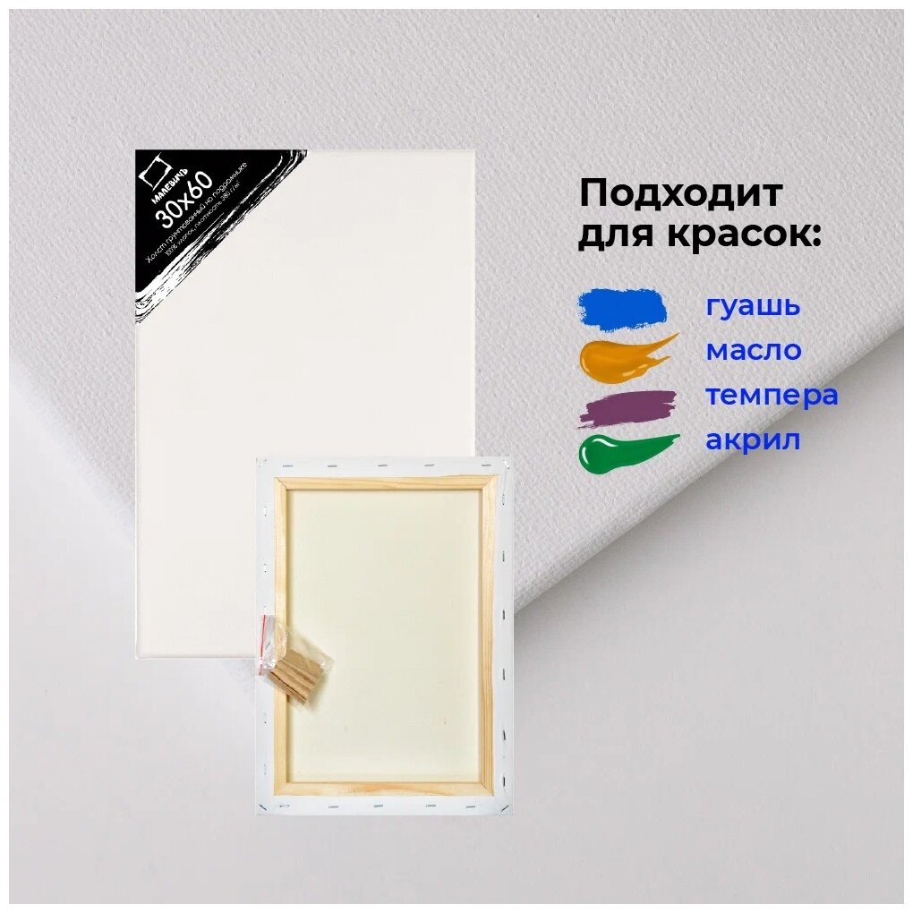 Холст на подрамнике грунтованный Малевичъ 30х60 см среднезернистый хлопок 100% 380г (МЛ-213060)