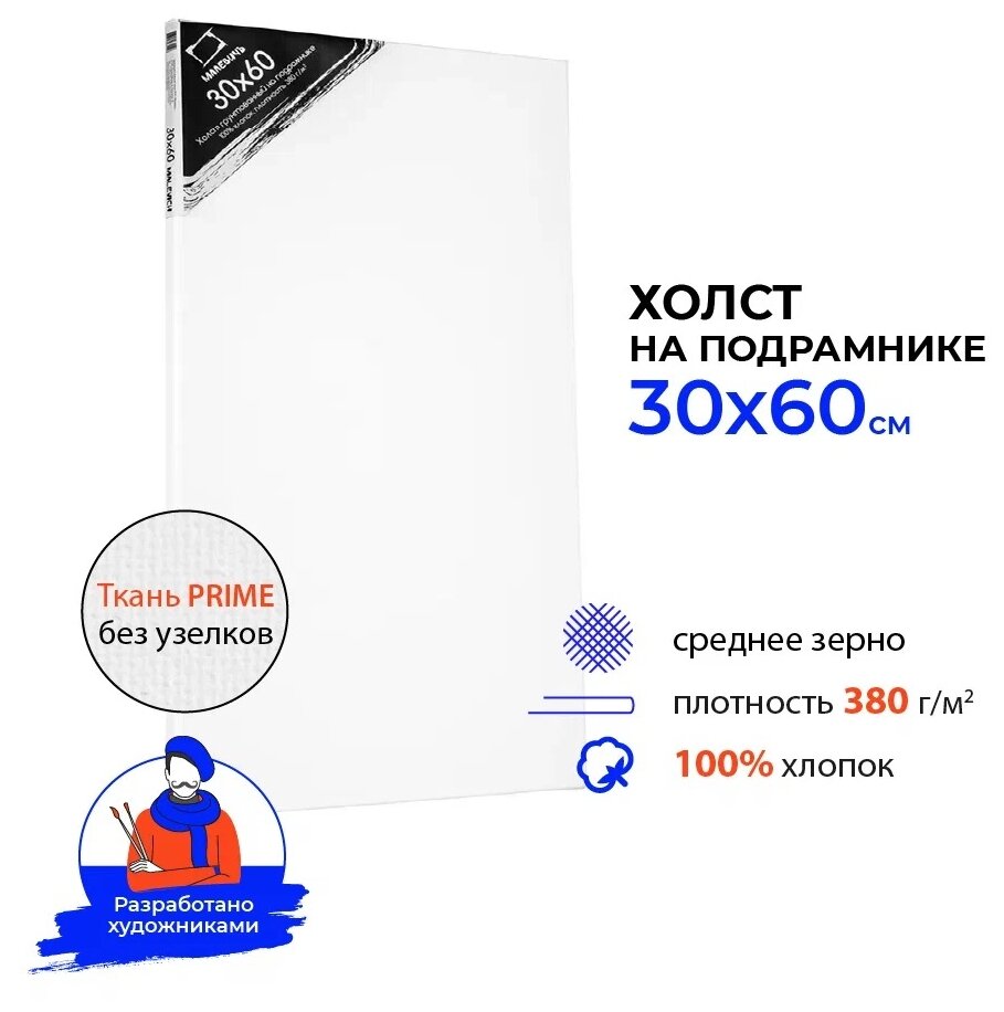 Сервис сравнения цен СкидкаГИД предлагает сравнить цены на товар «Холст на подрамнике грунтованный Малевичъ 30х60 см среднезернистый хлопок 100% 380г (МЛ-213060)»