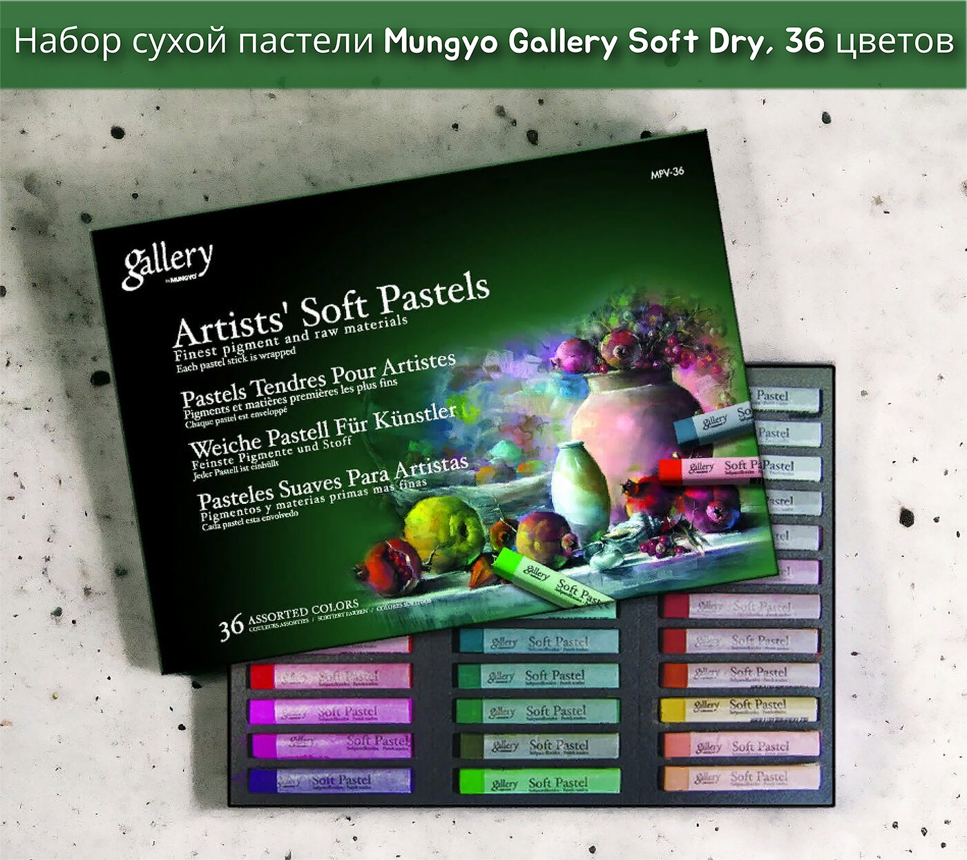 Набор сухой пастели Mungyo Gallery "Soft pastel" 36 цв мягкая квадратная в картонной коробке (MGMPV36)