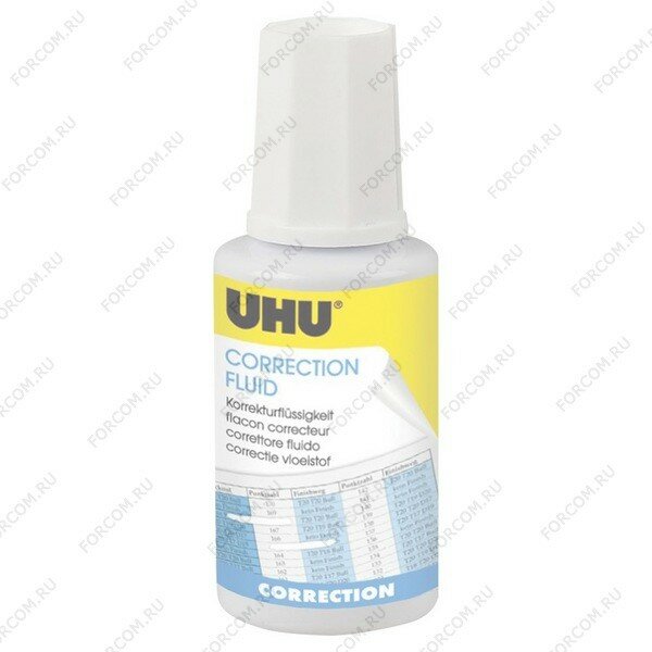 Корректирующая жидкость Uhu. Мгновенно высыхает в виде гладкой, ровной поверхности, обеспечивая быстрое нанесение повторной надписи, а идеально ровный и гладкий штрих гарантирует полное закрашивание с первого раза.