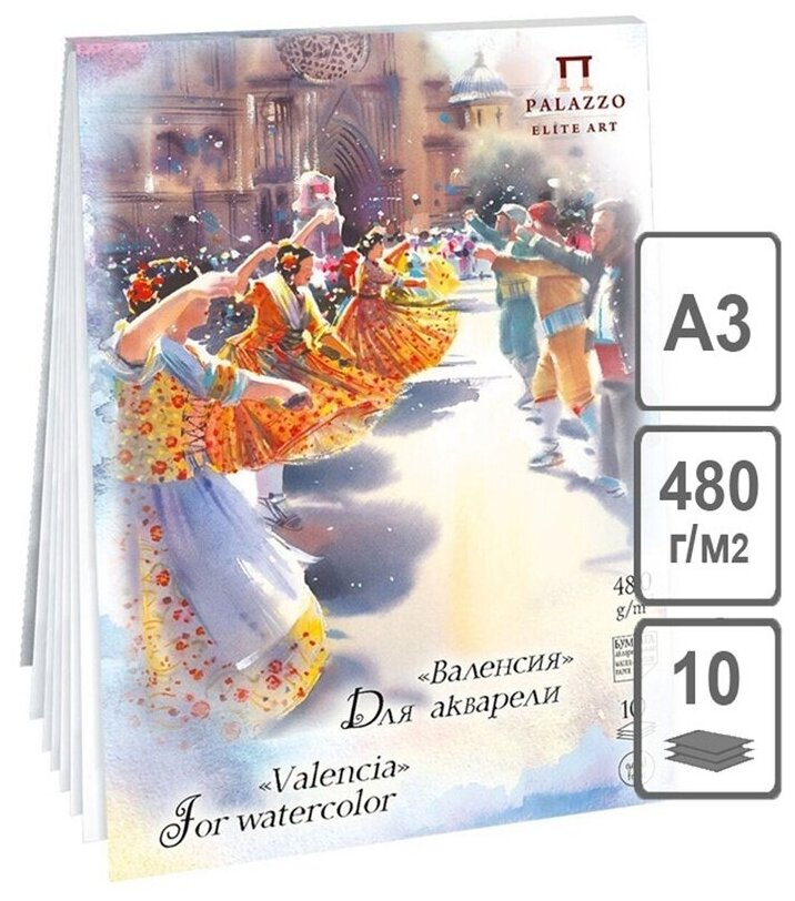 Планшет для акварели Лилия Холдинг "Валенсия" 297х42 см 10 л 480 г (ЛХ-ПЛ-3138) (размер: 297x420)