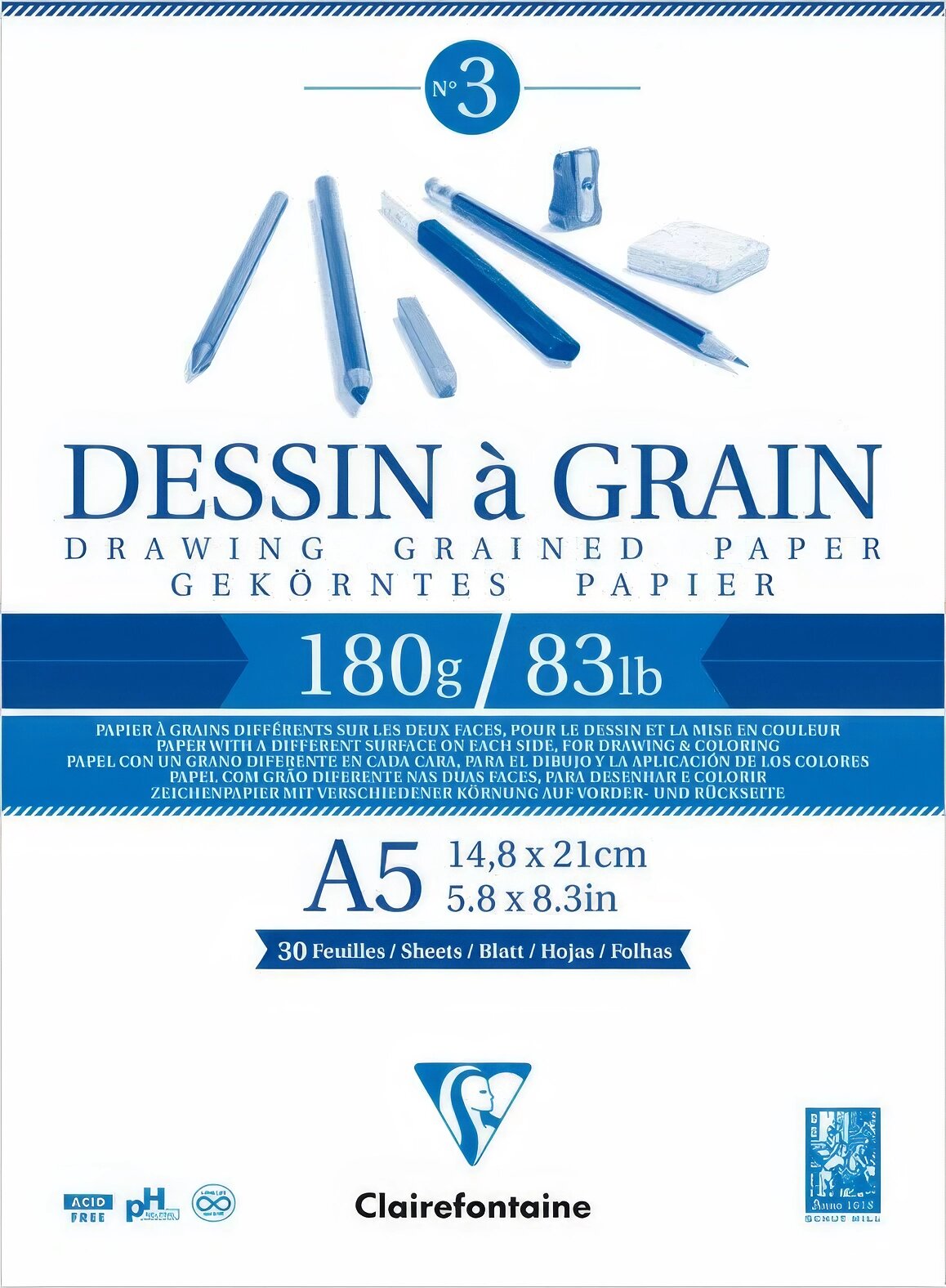 Блокнот для черчения Clairefontaine "Dessin a Grain" А5 30 л 180 г цвет белый (96626C) (размер: 148x210)
