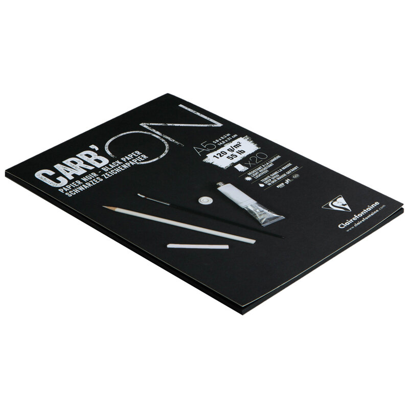 Скетчбук-склейка Clairefontaine "Carb'ON" А5 20 л 120 г мелкозернистый черный (975038C)