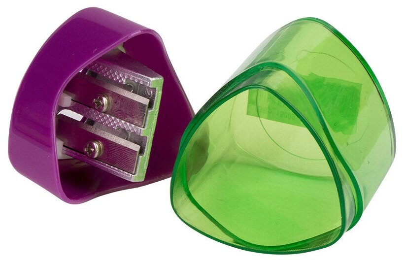 Точилка пластиковая , 2 отверстия. Яркие контракстные цвета крышки и контейнера. Большая вместимость контейнера. Позволяет легко и аккуратно производить заточку карандашей стандартного диаметра до 12 мм. Лезвия из высокачественной стали.