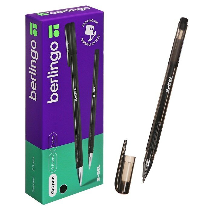 Ручка гелевая Berlingo X-Gel с колпачком и клипом привлекает внимание стильным, лаконичным дизайном тонированного корпуса глубокого, насыщенного цвета. Цвет корпуса и колпачка соответствует цвету чернил. Эргономичная трёхгранная зона захвата обеспечивает удобство при работе при использовании ручки. Рифление в зоне захвата препятствует скольжению пальцев. Диаметр пишущего узла составляет 0,5 мм, благодаря чему получается тонкая, аккуратная линия. Толщина линии письма составляет 0,4 мм, длина непрерывной линии - свыше 400 метров.