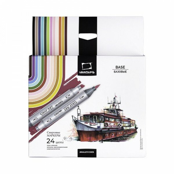 Набор маркеров спиртовых Малевичъ "GrafArt Brush" Базовый 24 цвета (МЛ-190902)
