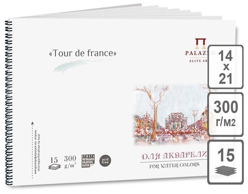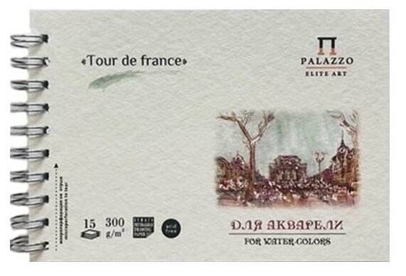 Альбом для акварели Tour de France на спирали и состоит из 15 листов бумаги плотностью 300 г/кв.м.