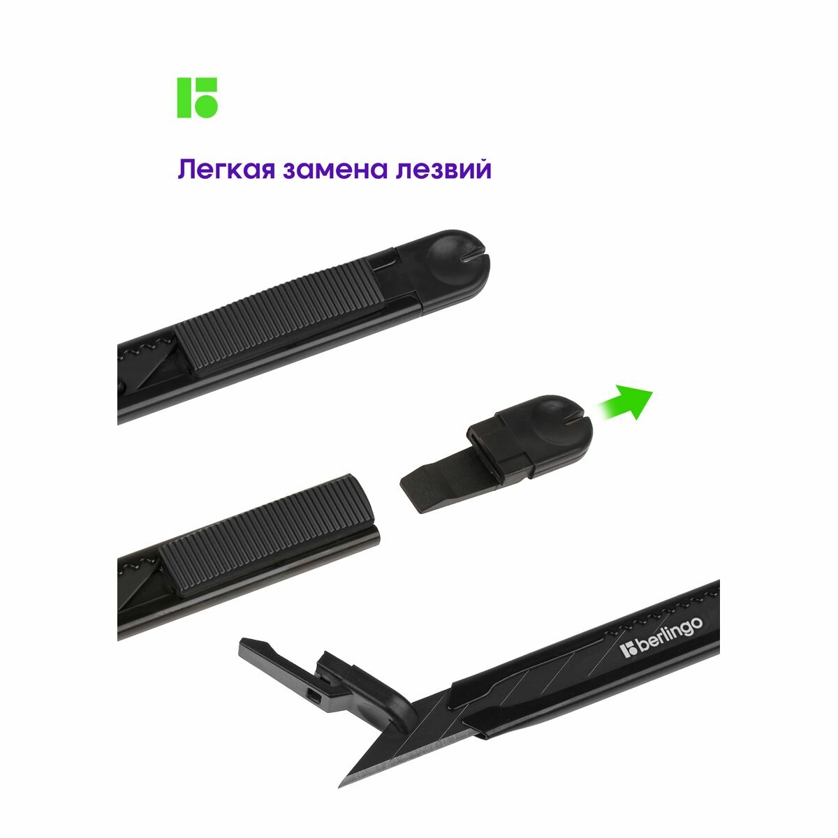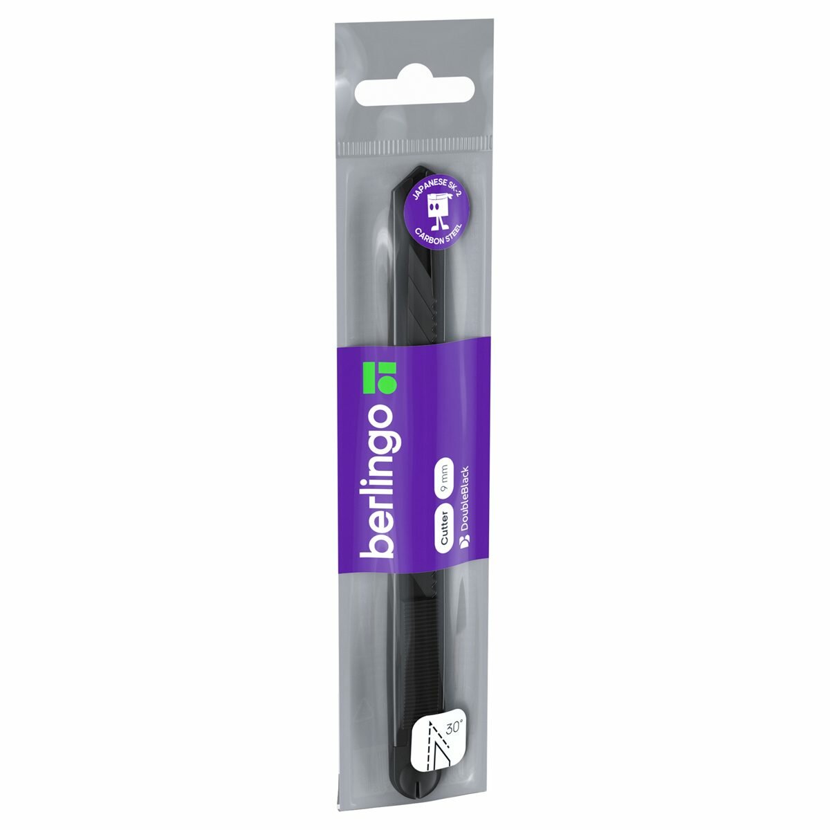 Нож канцелярский Berlingo "Double black" 9 мм auto-lock металлический корпус европодвес (BM4129)
