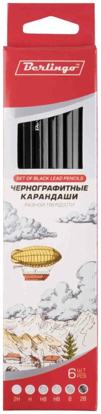 Набор карандашей чернографитных Berlingo 6 шт. 2H-2B заточен. картон. упак. европодвес (BS01206)