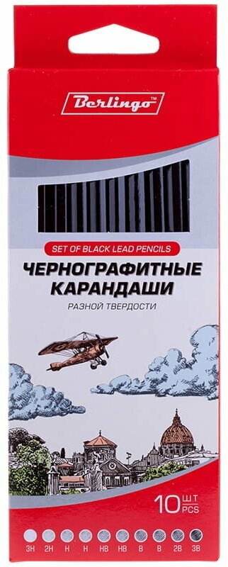 Набор карандашей чернографитных Berlingo 10 шт. 3H-3B заточен. картон. упак. европодвес BS01210
