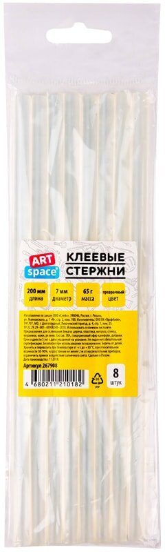 Сервис сравнения цен СкидкаГИД предлагает сравнить цены на товар «Клеевые стержни ArtSpace прозрачные 8 шт диаметр 7 мм длина 200 мм (267908)»