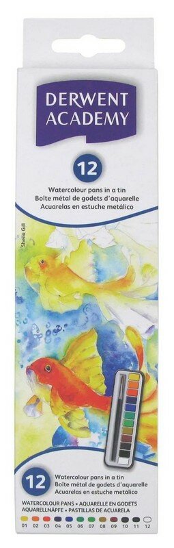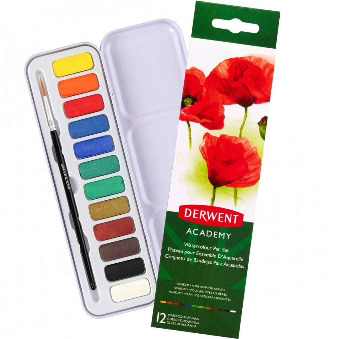 Набор акварели Derwent "Academy" 12 цв в кюветках + кисть в метал уп (2301955)