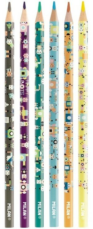 Набор цветных карандашей MILAN "HAPPY BOTS" 6 цв трехгранные в пластиковой упаковке (072331506HB)