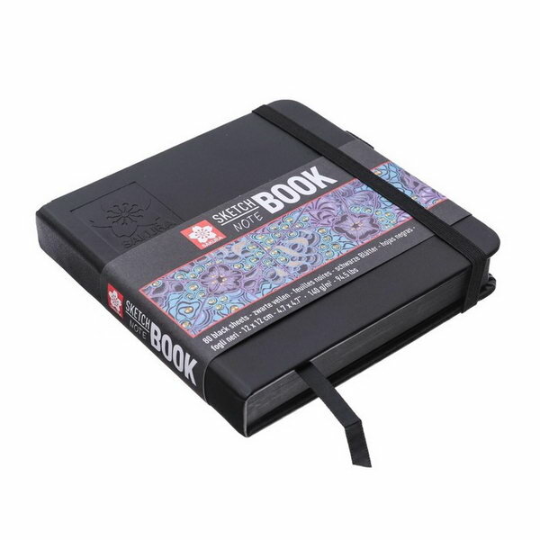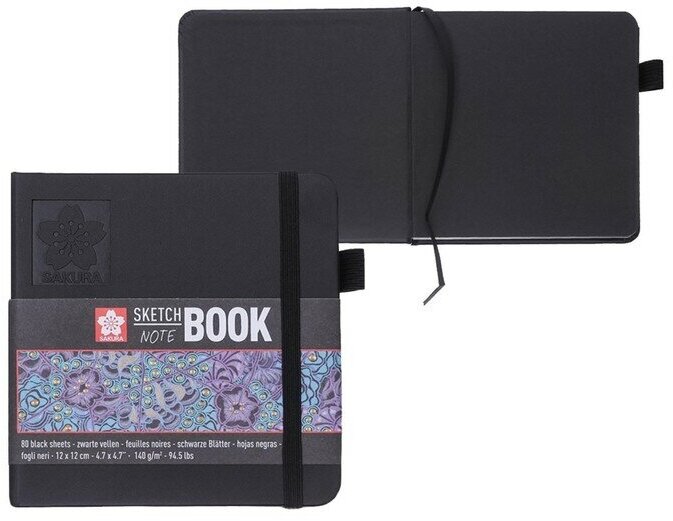 Блокнот для зарисовок Sakura 12х12 см 80 л 140 г черная бумага твердая обложка (94141002)