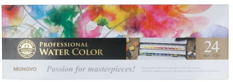 Набор акварели Mungyo "Gallery" 24 цв мал. кюветы в металлической коробке (MGMWPH24)