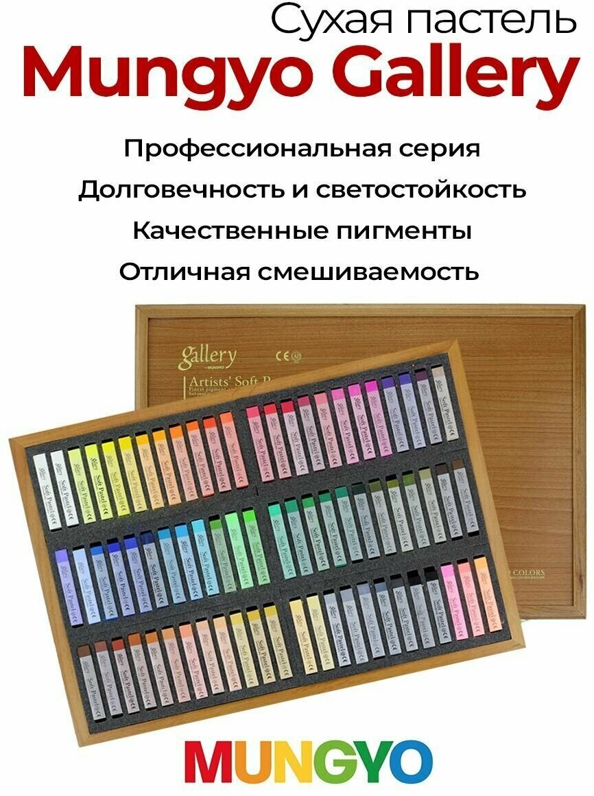 Набор сухой пастели Mungyo "Soft pastel" 72 цв мягкая квадратная в деревянной коробке (MGMPV72W)
