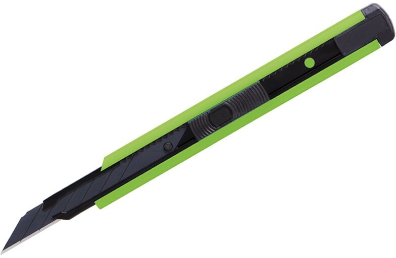 Серия ColorZone . Нож канцелярский с автоматической системой фиксации лезвия auto-lock. Корпус ножа металлический. Комплектуется износостойким стальным лезвием с углом 30 градусов черного цвета, для более легкого скольжения. Ширина лезвия - 9 мм.
