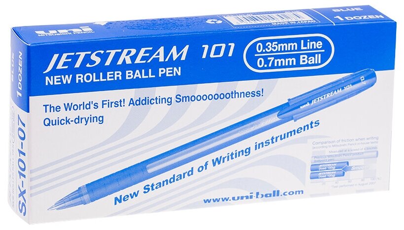 Шариковая ручка Uni SX-101 это ручка из серии Jetstream — новое поколение ручек с быстро-сохнущими чернилами и обновленным механизмом пишущего узла. Ручка Uni SX-101 выполнена в простом и лаконичном дизайне с резиновым держателем и колпачком с клипсой. Новые гибридные чернила обладают повышенной вязкостью, что обеспечивает супер быстрое скольжение во время письма. Чернила Jetsream легко проникают в бумагу и мгновенно высыхают. Шариковой ручкой Uni JetstreamSX-101 будет удобно пользоваться как правше, так и левше. Цвет чернил черный.