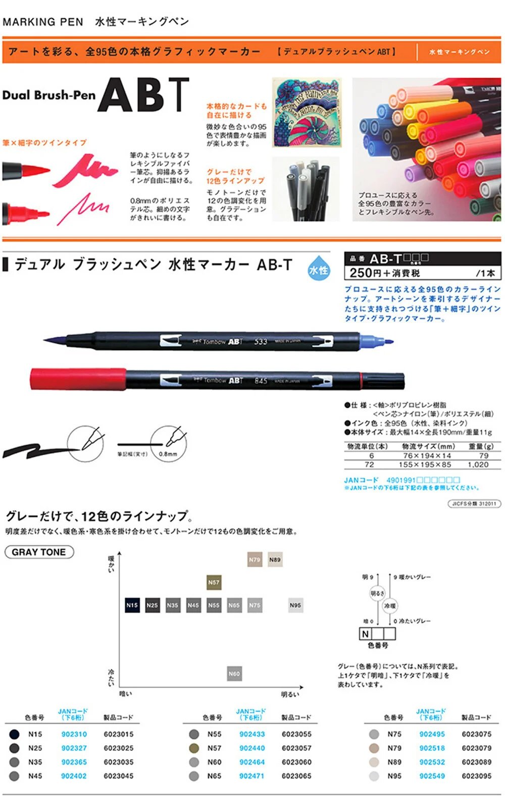 О серии: маркеры ABT японского бренда Tombow – это двусторонние маркеры с чернилами на водной основе. Серия маркеров представлена из 96 оттенков. Все маркеры выпускаются поштучно и в наборах различной комплектации.