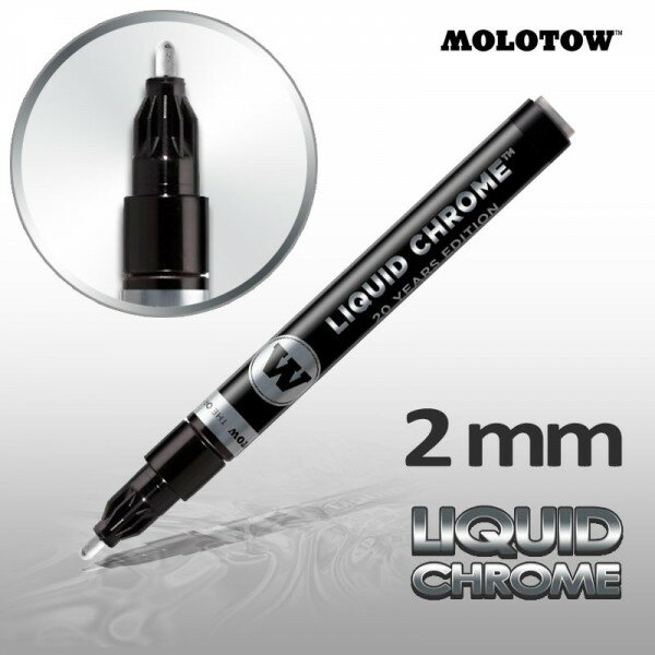 Маркер спиртовой Molotow Liquid Chrome. В линейке представлены маркеры с различной толщиной пишущего узла. Маркер жидкий хром, идеально работает на гладких не впитывающих поверхностях. Максимальный из возможного зеркальный эффект. Многоразового использования. Перья сменные.