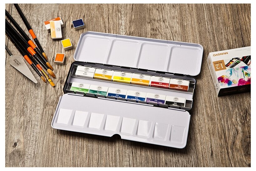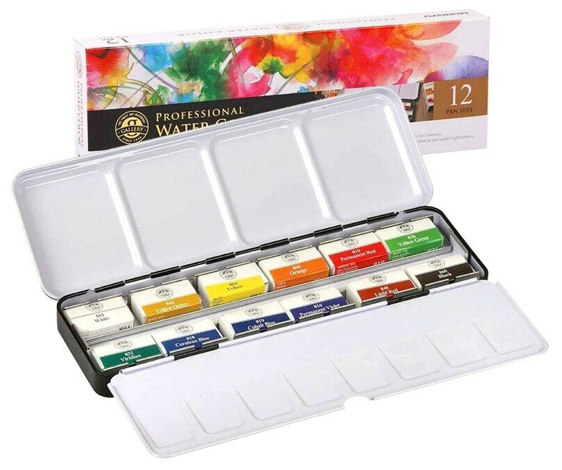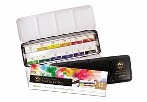 Набор акварели Mungyo "Gallery" 12 цв кюветы в металлической коробке (MGMWPF12)