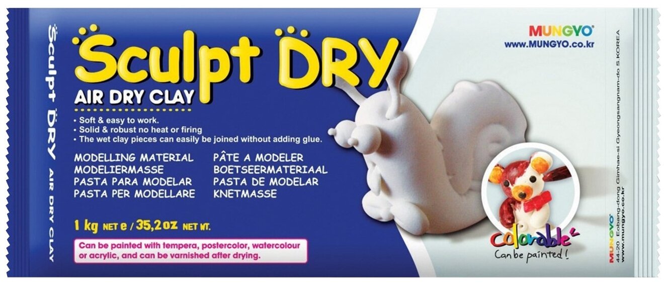 Глина для моделирования Sculpt Dry от Mungyo отлично подойдёт как для профессиональной лепки, так и для детского творчества. Глина для моделирования хорошо лепится, не требует добавления воды или других клейких составов. После высыхания поделки не нуждаются в обжиге, можно сразу приступать к раскрашиванию или наносить лак. Глина не содержит токсичных и вызывающих аллергию элементов. Во избежании высыхания глины рекомендуется использовать герметичный пакет или пластиковый контейнер для её хранения. После лепки тщательно мойте руки с мылом. Серия представлена в трёх цветах. Поставляется в упаковке объёмом 1000, 500 и 250 гр.