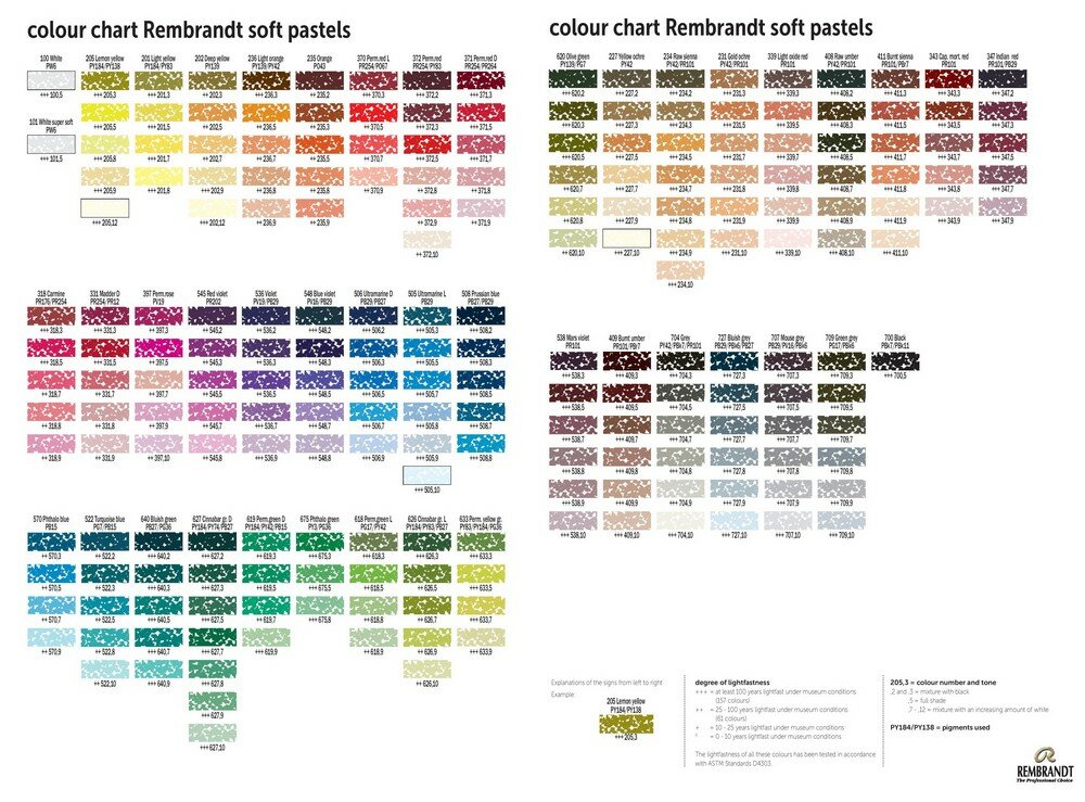 Пастель сухая Rembrandt. Отличная цветовая гамма, 218 цветов. Высокая концентрация пигмента. Не содержит: свинец, кадмий, кобальт.