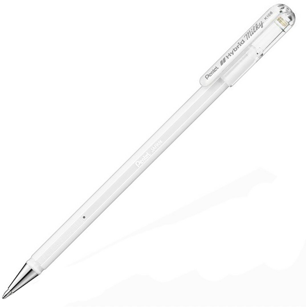 Ручка гелевая Pentel "Hybrid Milky" 08 мм стержень пастельный белый (K108-PW)