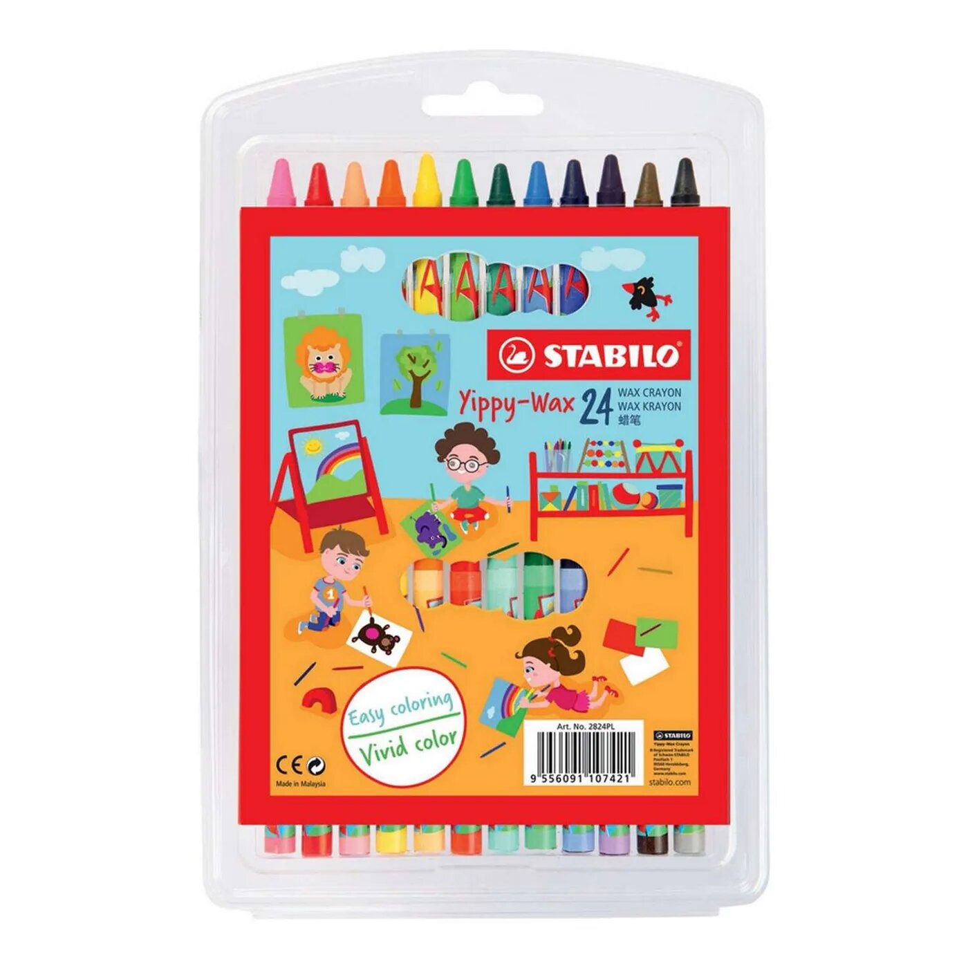 Набор мелков восковых Stabilo. 24 нежных, насыщенных цвета, легко наносятся. Форма мелков круглая, диаметр 10мм. Очень прочные, не крошатся, не ломаются, не образуют пыли, не нуждаются в затачивании. Упаковка: картонная коробка.